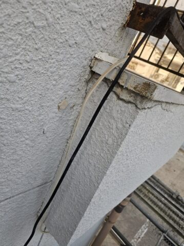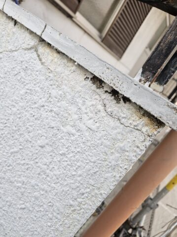 モルタルで欠損部分を補修します🪣次に 欠けていた部分を モルタルで成形しながら補修します✨外壁の角は 地震や振動の影響を受けやすい場所なので