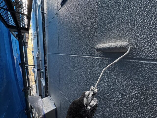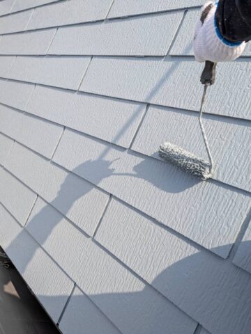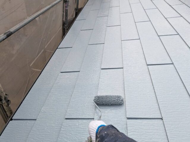 ↑📸【写真:屋根上塗り作業の様子】 🏠 屋根塗装 中塗り・上塗り工程🎨✨