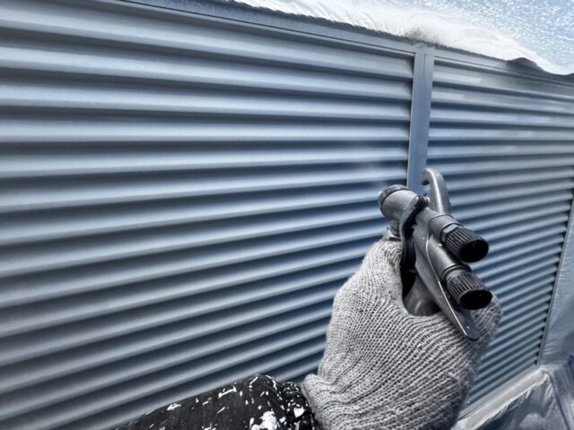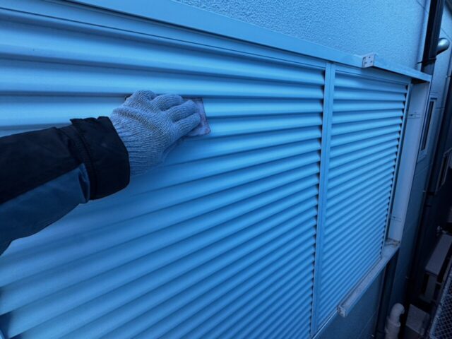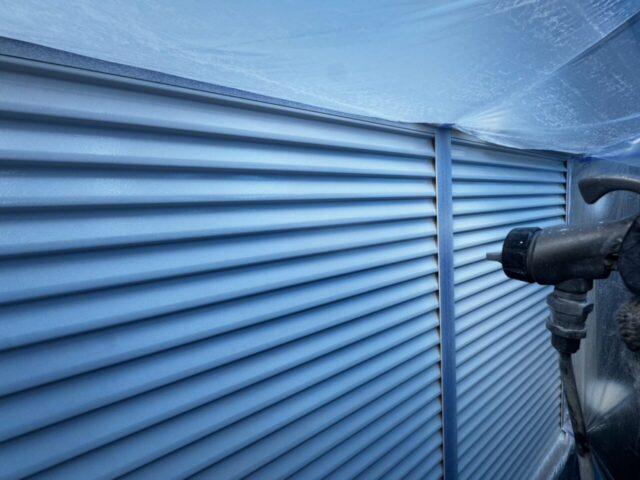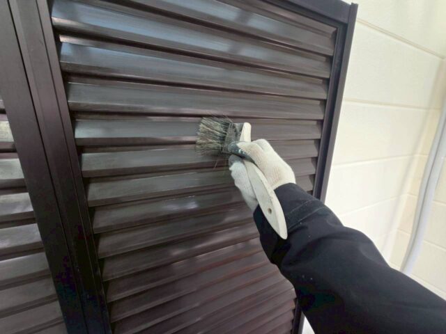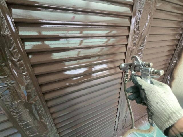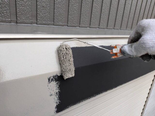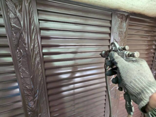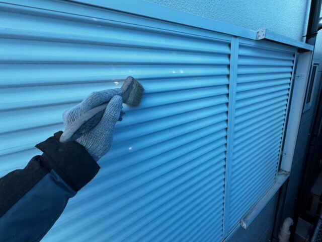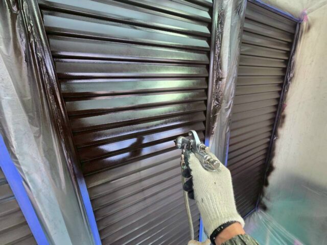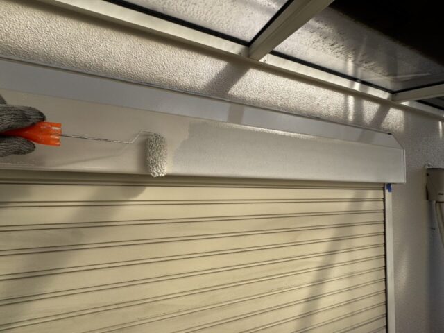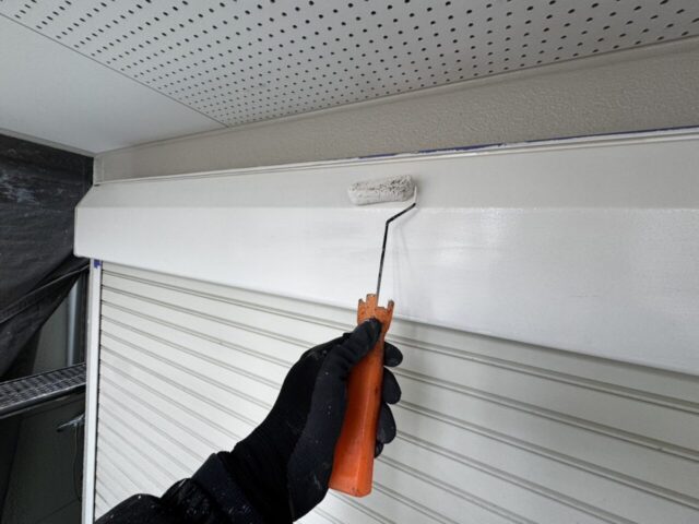 ↑📸【写真:シャッターボックス1回目上塗り作業の様子】
