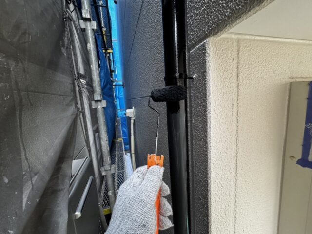 ↑📸【写真:雨どい2回目上塗り作業の様子】