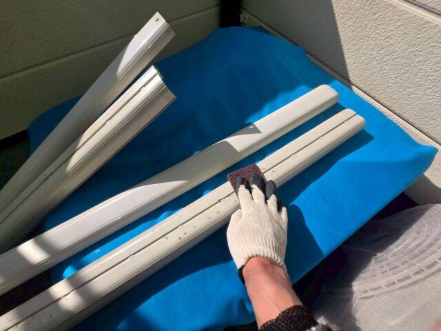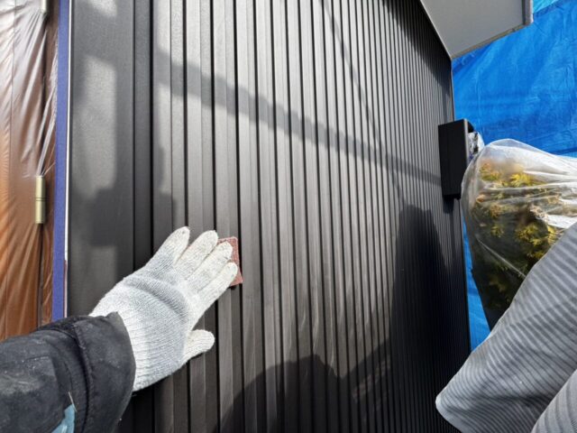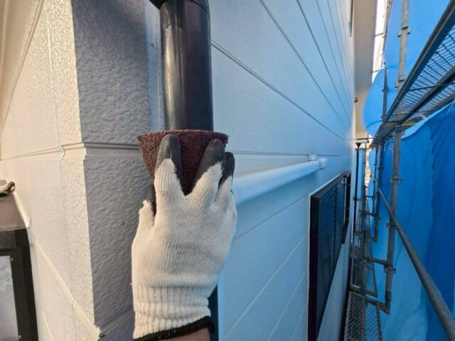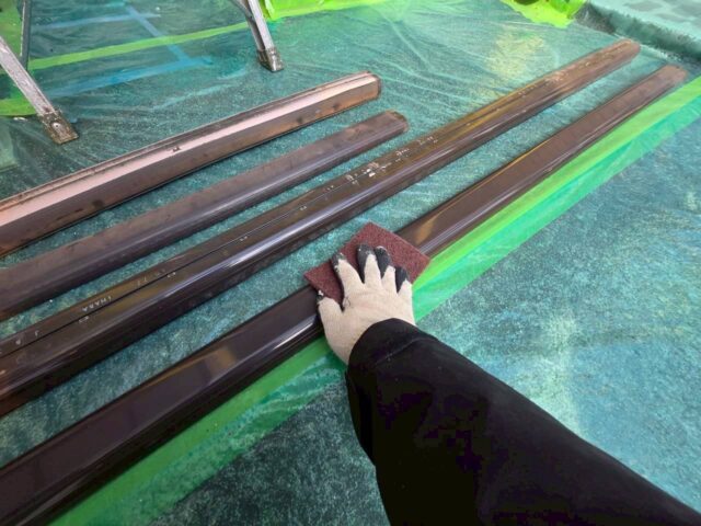 ✔ 手作業 で表面を細かくキズ付けしています🙂↕️🤔 なんで削るん?雨どいなどの付帯部は👇