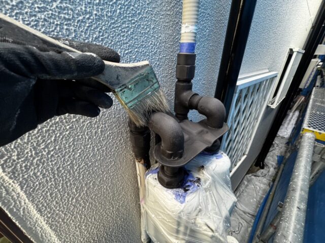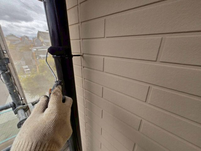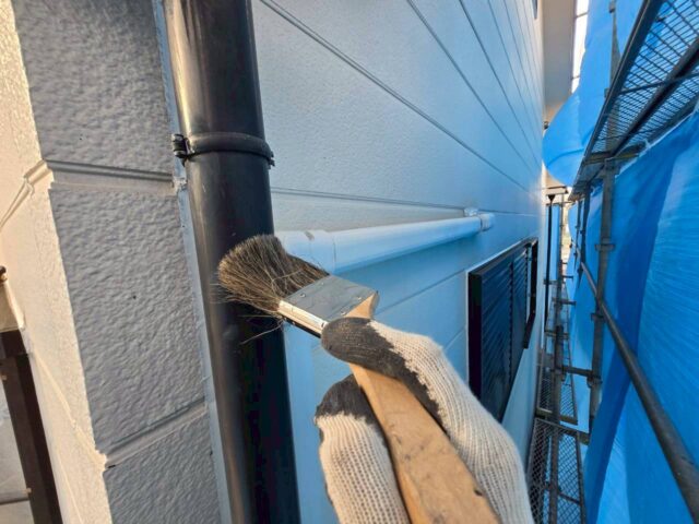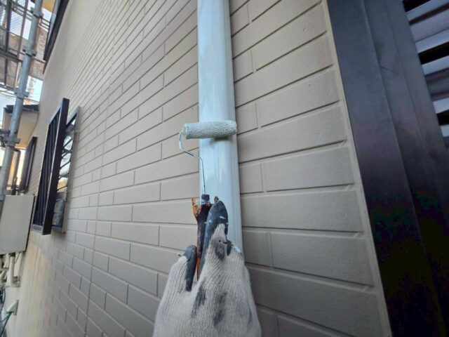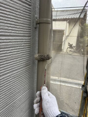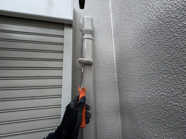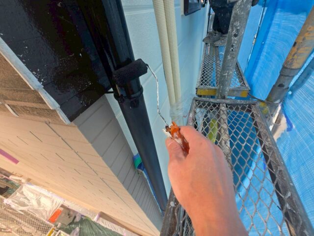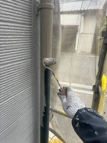 ↑📸【写真:雨どい1回目上塗り作業の様子】