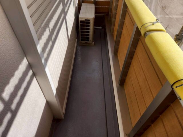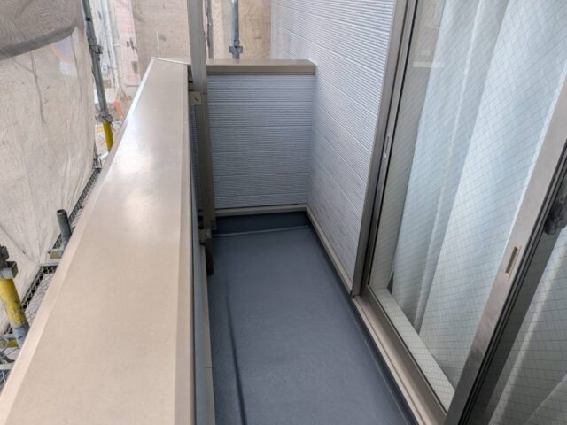 ↑📸【写真:バルコニー トップコート塗布完了の様子】