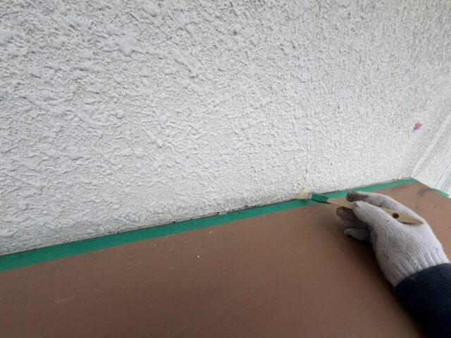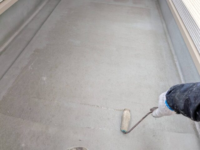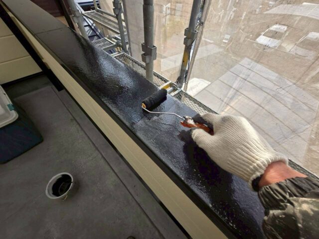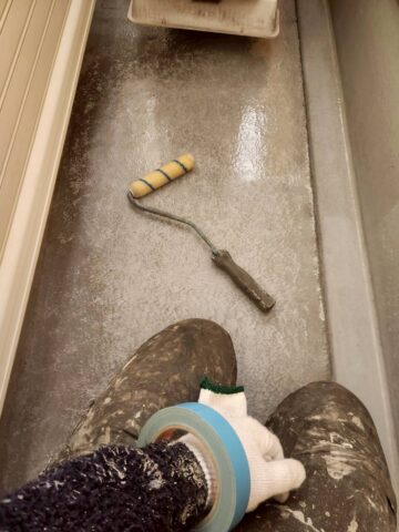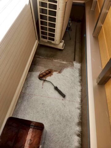 ↑📸【写真:バルコニートップコート塗布作業の様子】
