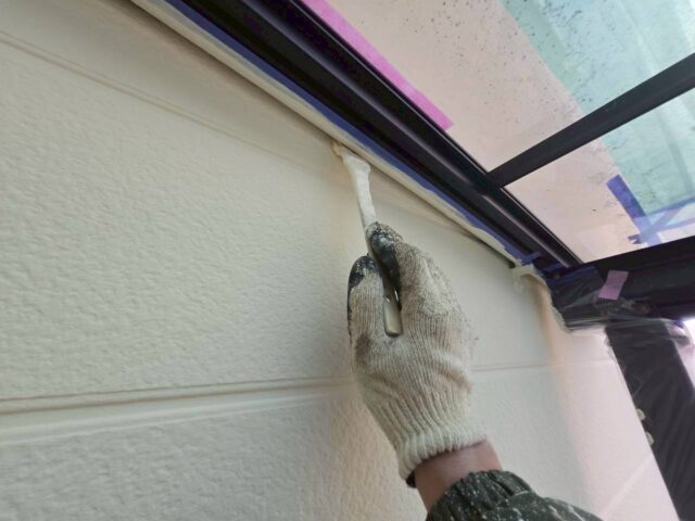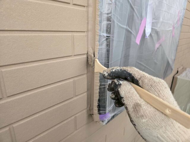 ↑📸【写真:誘発目地、サッシ廻り シーリング作業完了】