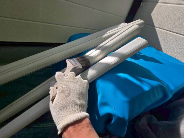 ↑📸【写真:庇(霧よけ) プライマー塗布作業の様子】