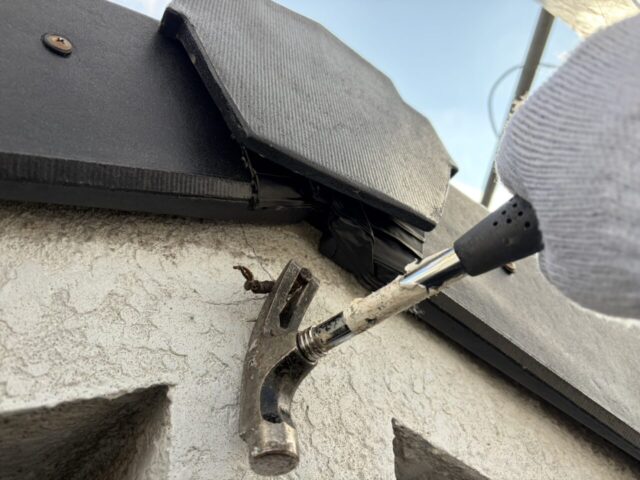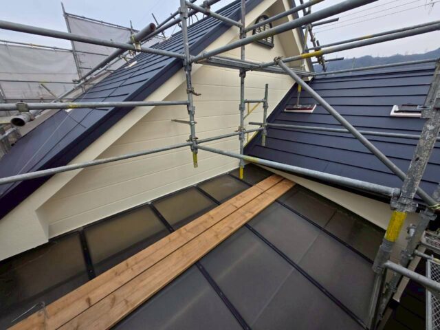 ↑📸【写真:屋根材(ルーガ 雅)取り付け作業の様子】