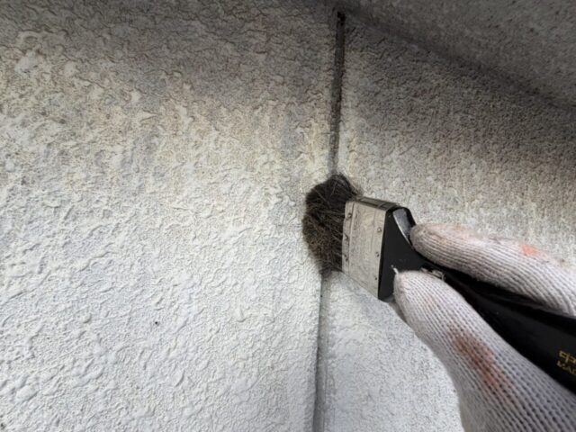 ↑📸【写真:誘発目地 シーリング打設前の清掃作業の様子】
