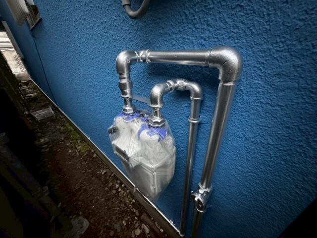 ↑📸【写真:ガス配管 アルミニウムペイント塗装完了】