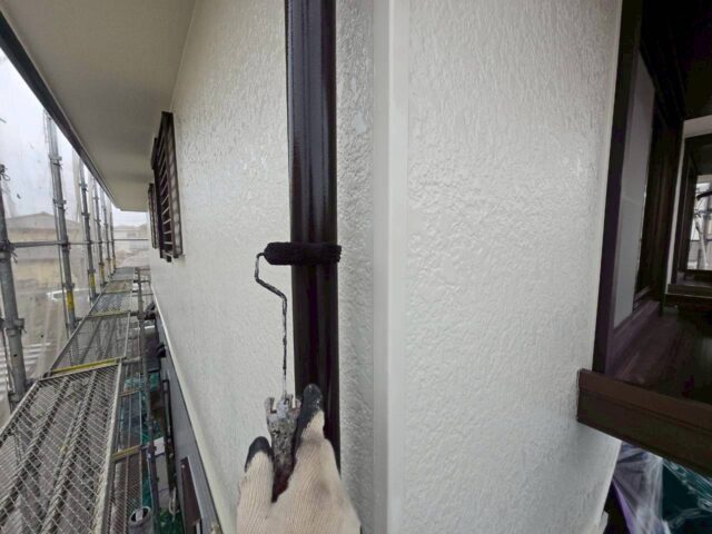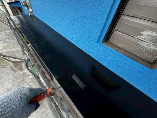 ↑📸【写真:軒どい 2回目上塗り作業の様子】