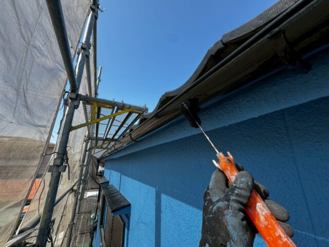 ↑📸【写真:軒どい ケレン後の清掃の様子】