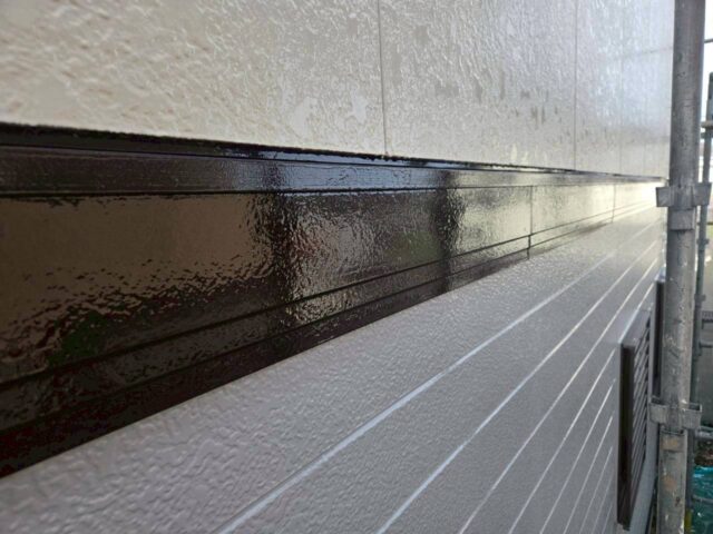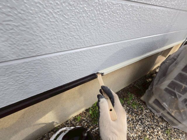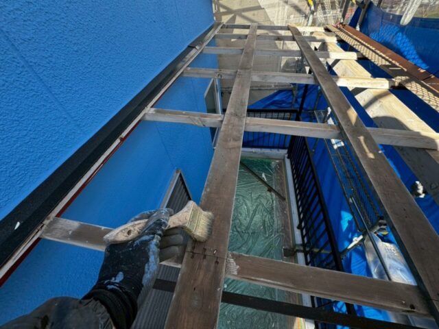 ↑📸【写真:土台水切り 2回目上塗り塗布の様子】