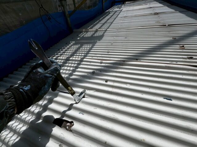 ↑📸【写真:波板取り外し作業中の様子】