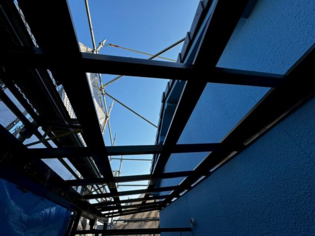 ↑📸【写真:波板骨組み ケレン作業後の清掃の様子】