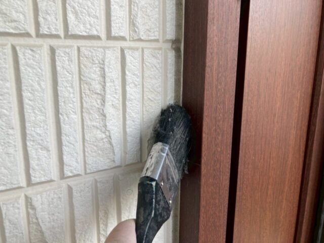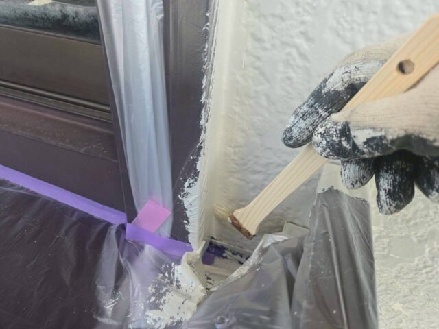 ↑📸【写真:サッシ廻り プライマー塗布作業の様子】