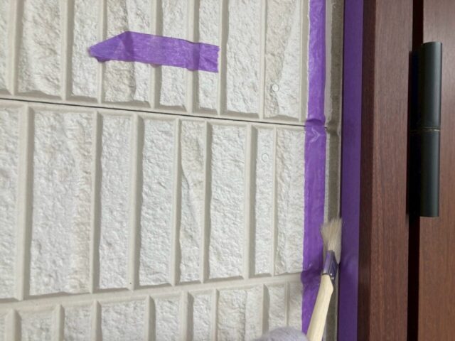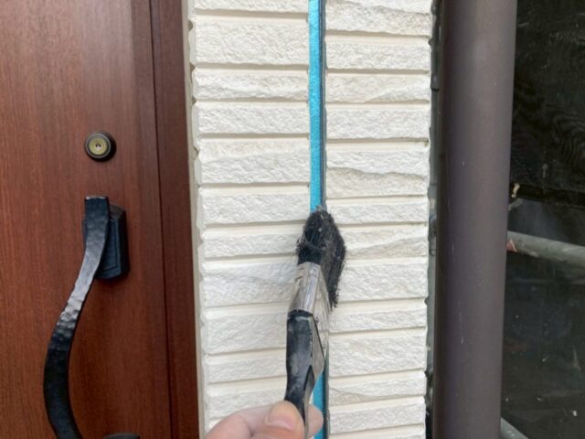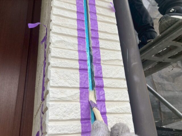 ↑📸【写真:目地 プライマー塗布作業の様子】