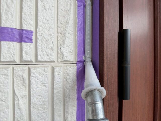 ↑📸【写真:サッシ廻り シーリング打設作業の様子】