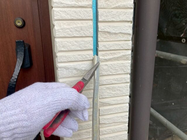 ↑📸【写真:目地 シーリング撤去作業の様子】