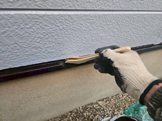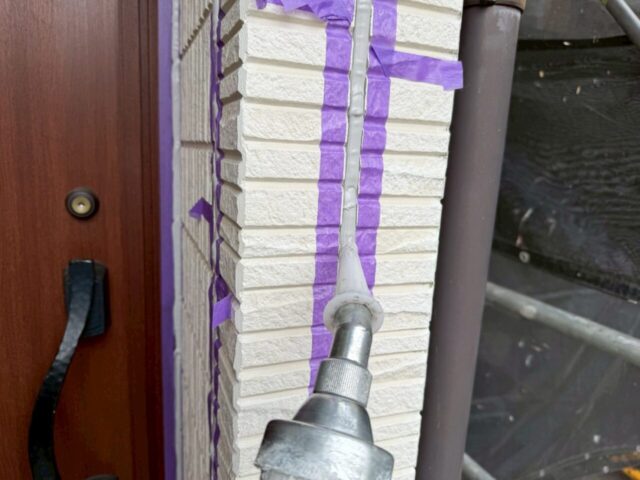 ↑📸【写真:目地 シーリング打設中の様子】