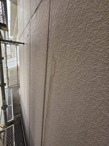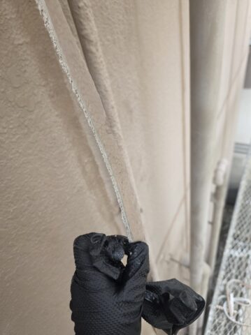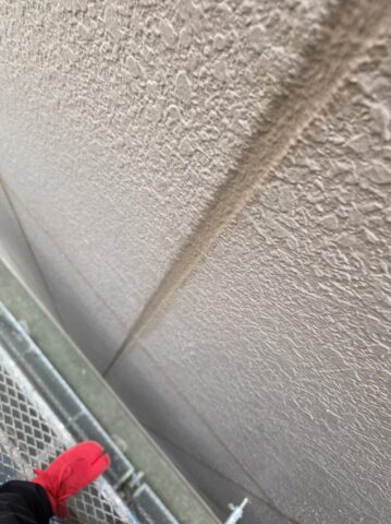 ↑📸【写真:外壁 チリ取り作業の様子】