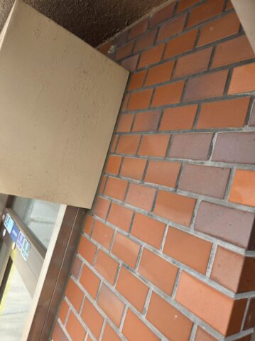 ↑📸【写真:目地 シーリング撤去後の清掃中の様子】