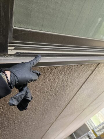 ↑📸【写真:サッシ廻り シーリング打設前の清掃作業の様子】