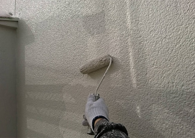 コンクリート壁の下塗りは、外壁材と中塗りの接着力を強め、耐久性(防水性・耐候性)に優れた外壁塗膜を作り出す大きな役割をします。